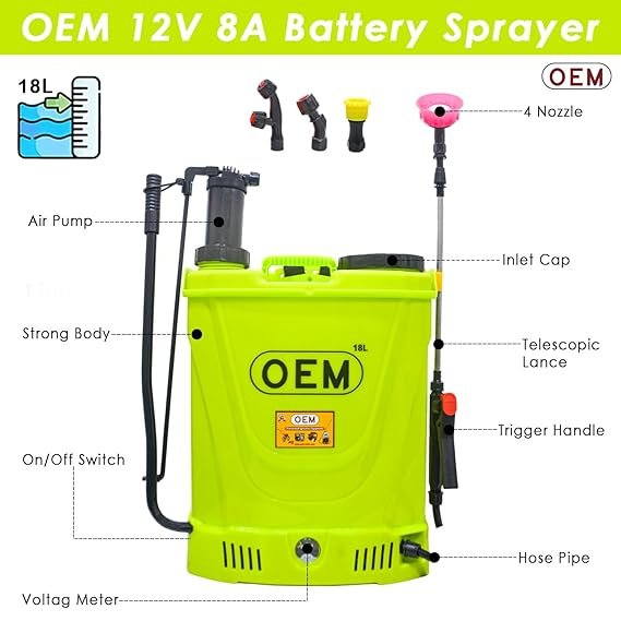 - HEAVY BATTERY : Our OEM Knapsack Sprayer Comes with our Own Brand OEM Battery which Provide Long Working Hours and also Long Battery Life for long Duration , which Spray for long Hours Around 20-25 Tanks In One Full Charge.